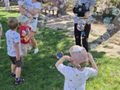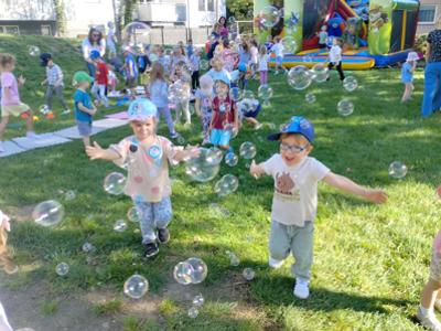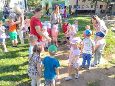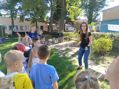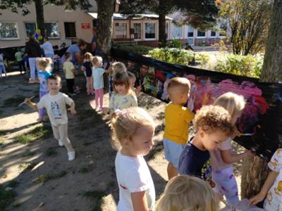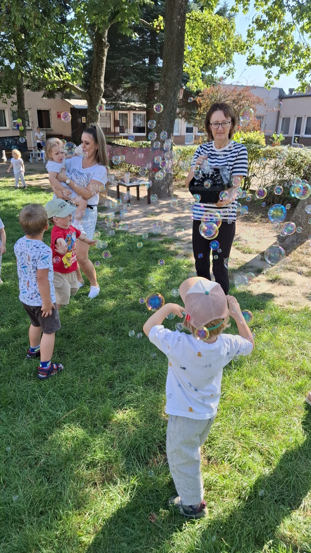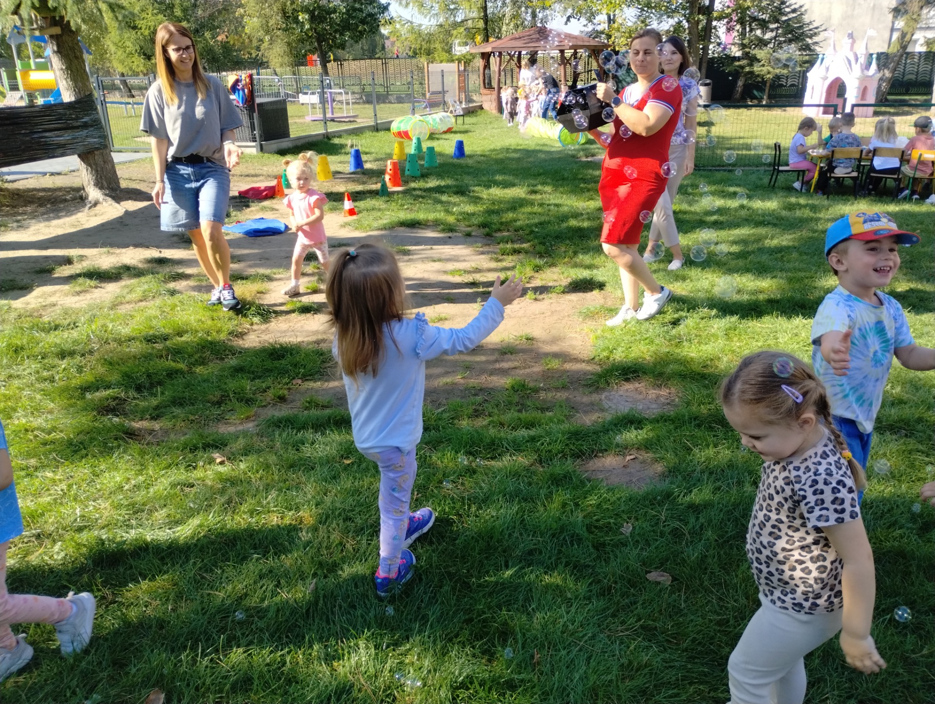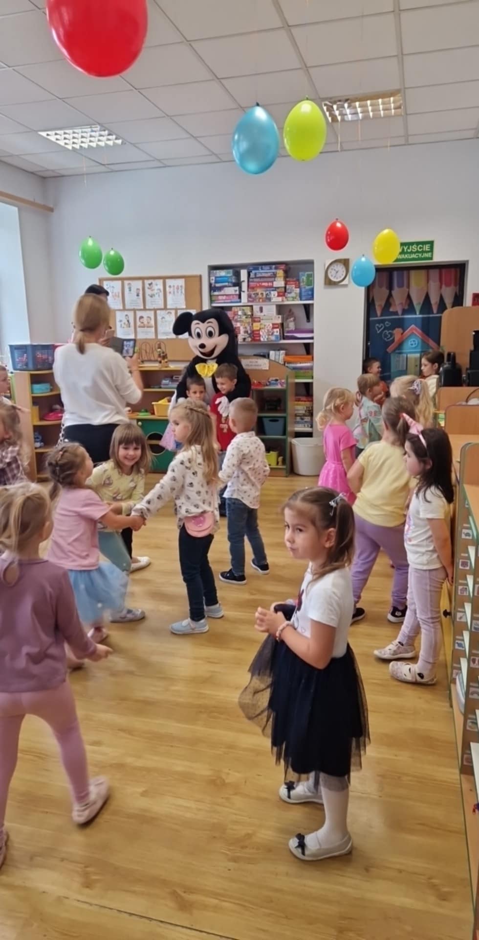 Nie zabrakło także ulubionych baniek mydlanych, kącika plastycznego oraz wspólnych zabaw przy muzyce. Oddział na szpitalnej odwiedził również gość - Myszka Miki. Szczególnym momentem było wręczenie nagród za udział w konkursie „Grójeckie Jabłko w barwach jesieni”, które dostarczyło uczestnikom wiele radości i dumy. Na zakończenie wszyscy świetnie bawili się na dmuchańcu