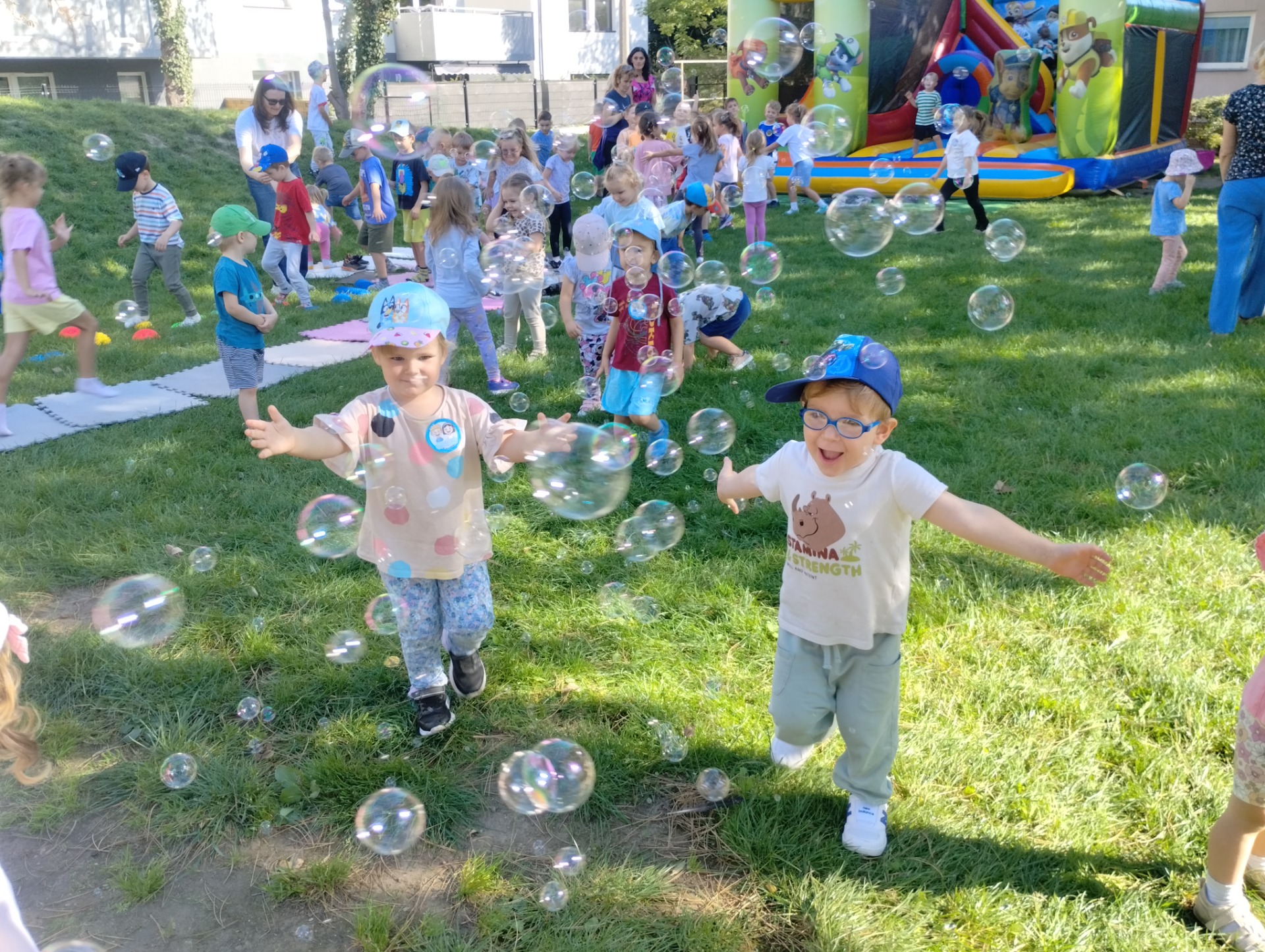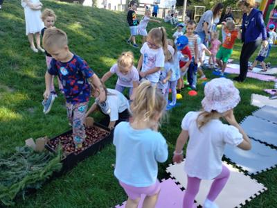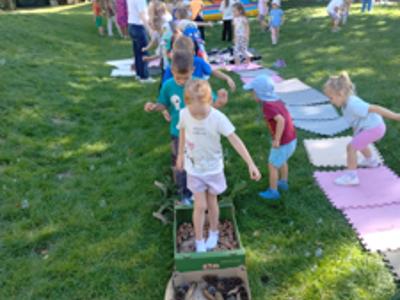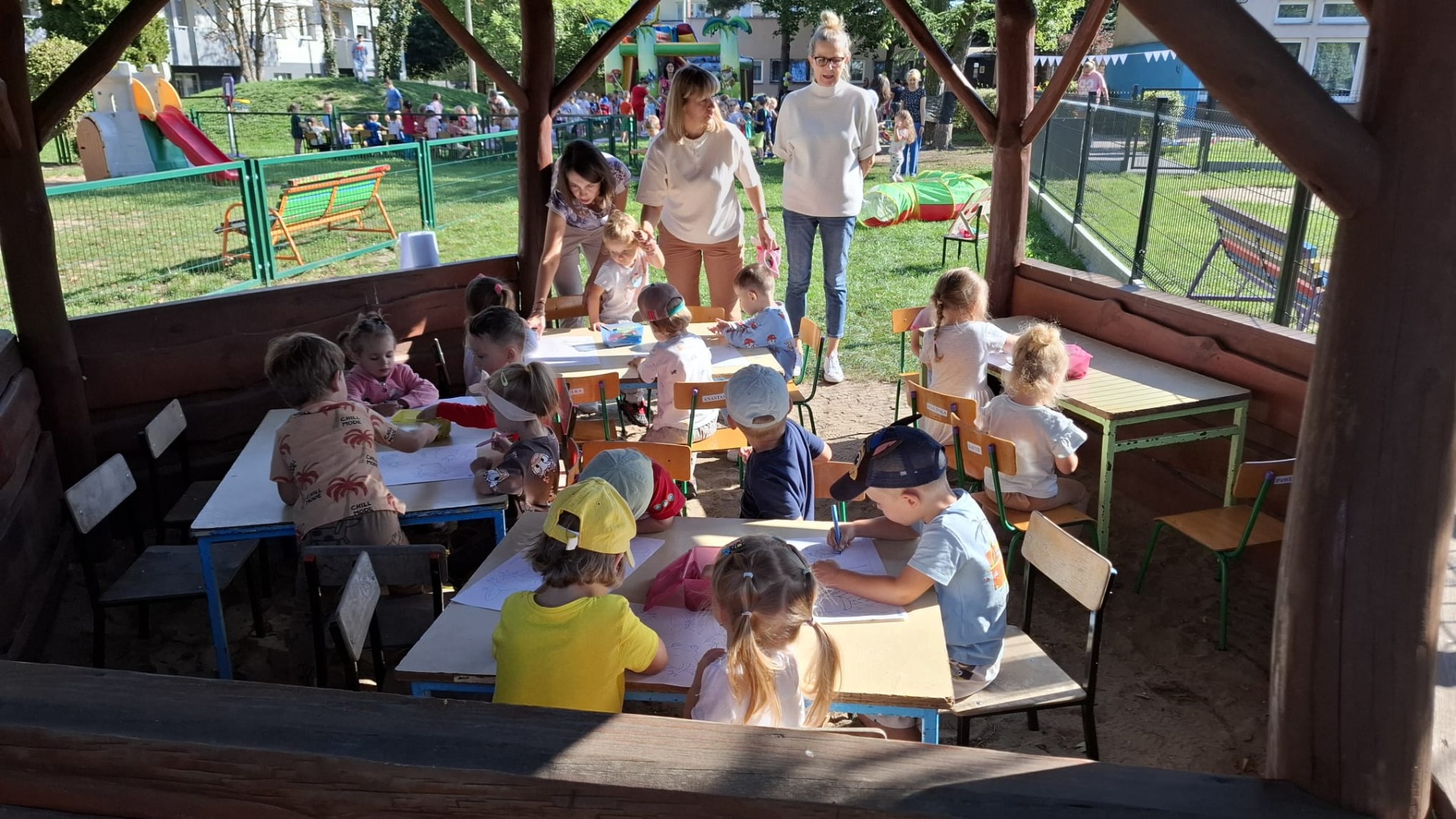 W obu siedzibach naszego przedszkola świętowaliśmy Dzień Przedszkolaka. Było to wydarzenie pełne uśmiechów, zabawy i radosnych przeżyć. Na dzieci czekało wiele atrakcji – rozwiązywały konkursowe zagadki, pokonywały jesienną ścieżkę sensoryczną, brały udział w zabawach ruchowych takich jak skoki w workach, przeciąganie liny czy tor przeszkód.