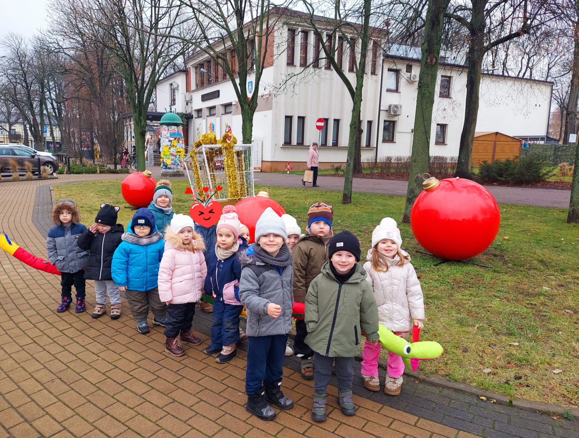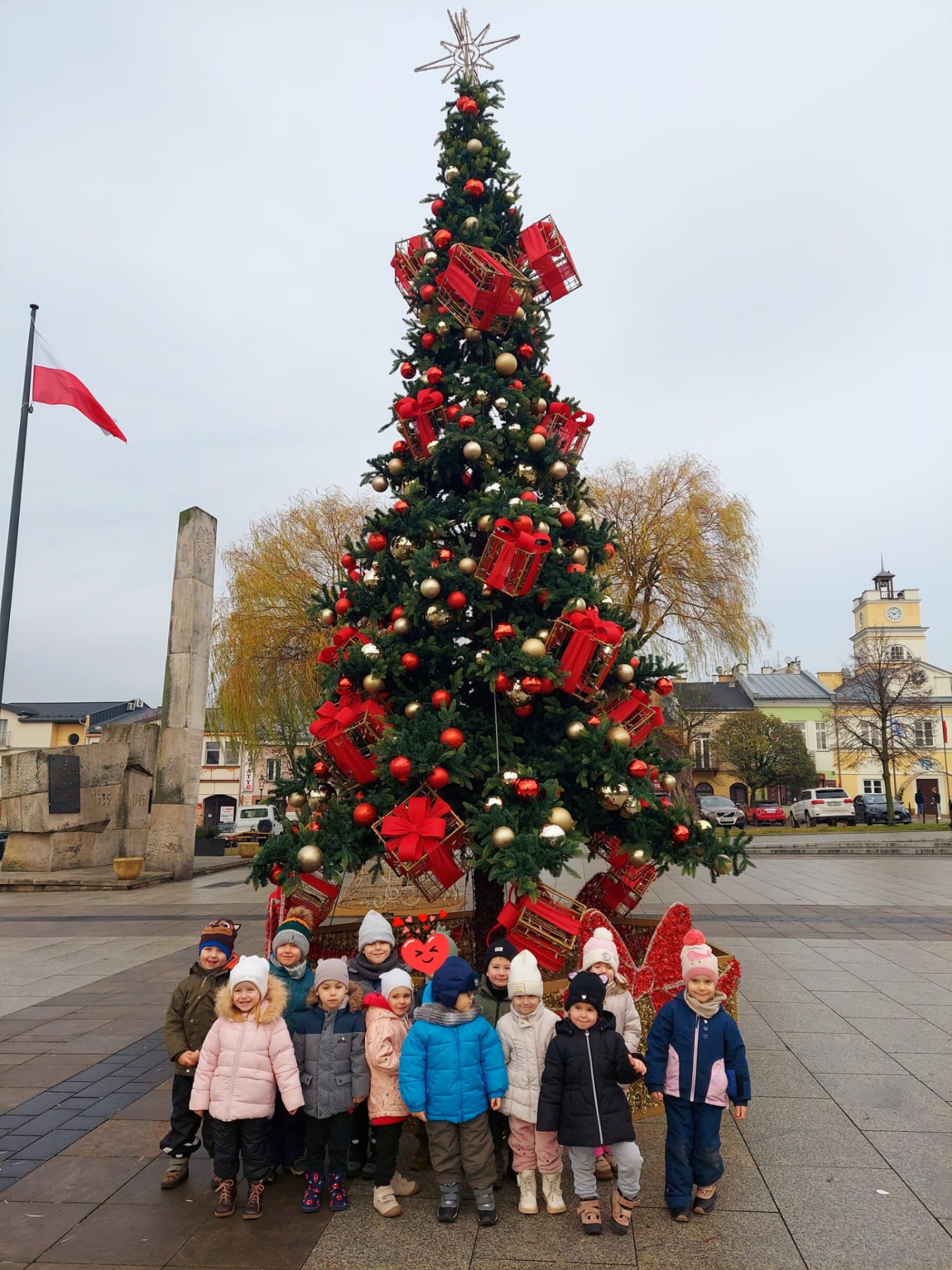 Dnia 10.12.2025 w ramach przygotowań do nadchodzących Świąt Bożego Narodzenia Maluszki z grupy 1b wybrały się na wyjątkowy spacer na rynek miejski. Dzieci z zachwytem podziwiały kolorowe dekoracje, migoczące światełka oraz imponującą choinkę, która wprowadziła wszystkich w magiczny, świąteczny nastrój. Spacer był okazją do rozmów o tradycjach, zwyczajach i radości płynącej ze wspólnego świętowania.